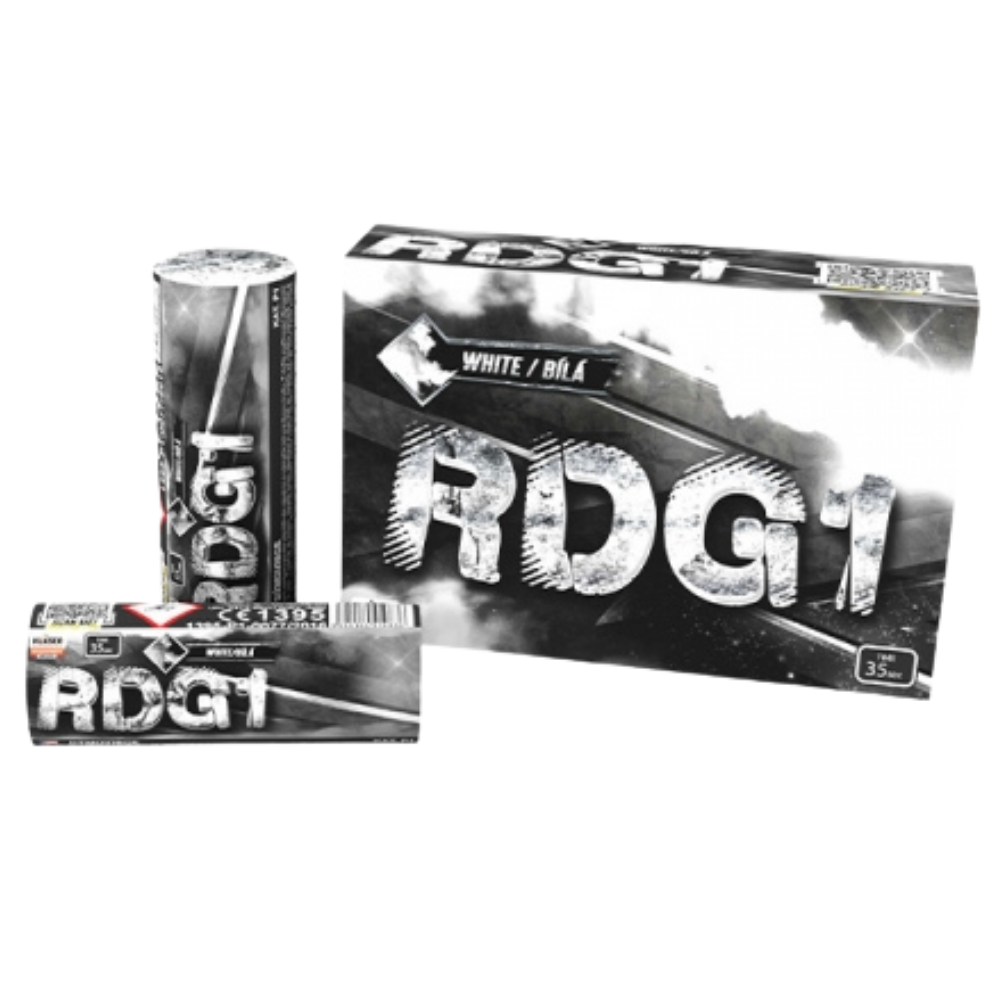Jedno balenie obsahuje 1 ručný dymový granát RDG1 bielej farby. Tieto farebné dymovnice dymia po dobu 35 sekúnd.
