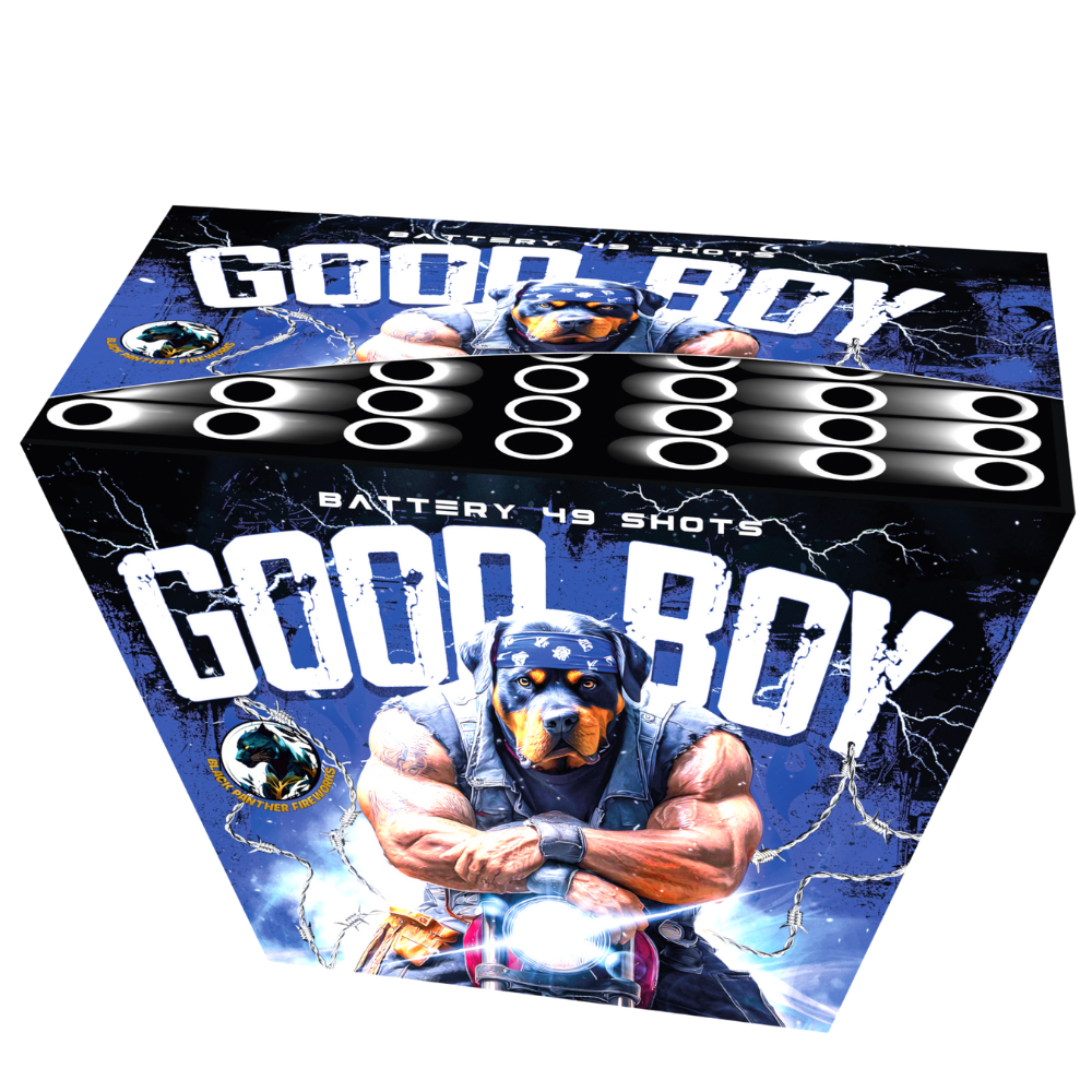 Kompaktný ohňostroj Good Boy 49 rán 20 mm je sprevádzaný rôznymi viacfarebnými efektami. Tento ohňostroj vypáli do vzduchu 49 rán ráže 20 mm.