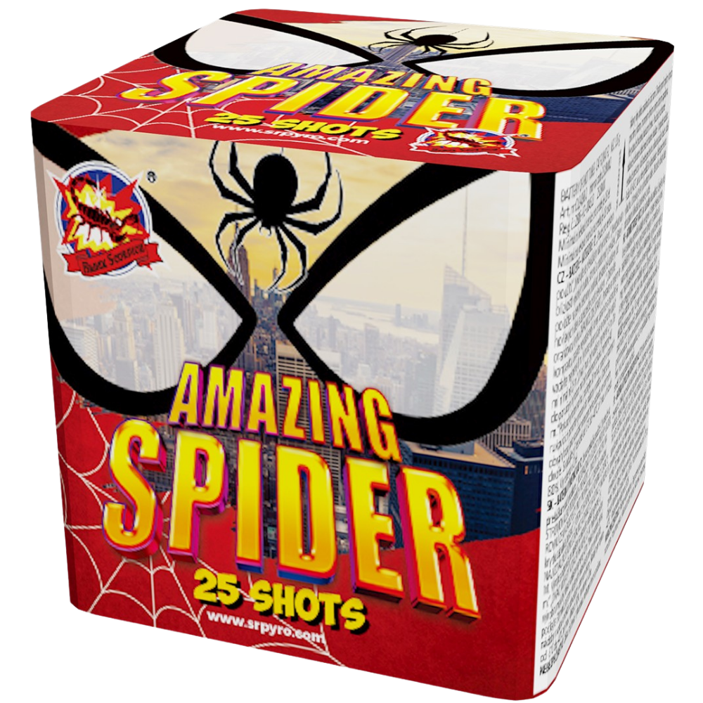 Kompaktný ohňostroj Amazing spider je sprevádzaný rôznymi viacfarebnými efektami. Tento ohňostroj vypáli do vzduchu 25 rán ráže 18 mm a celá show trvá cca 30 sekúnd.