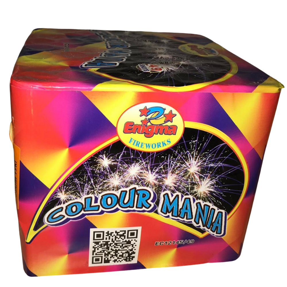 Kompaktný ohňostroj Colour Mania je sprevádzaný rôznymi viacfarebnými efektami. Tento ohňostroj vypáli do vzduchu 49 rán ráže 20 mm.