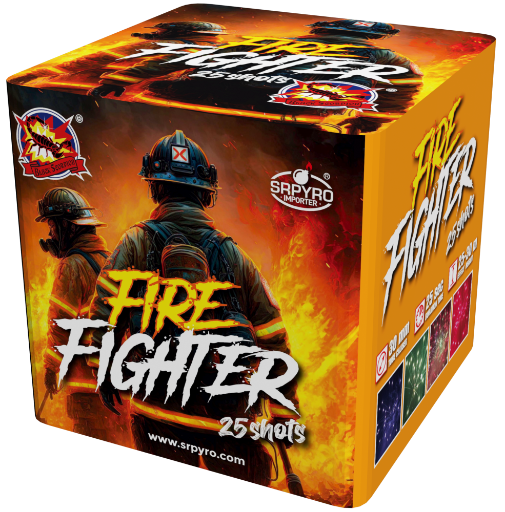 Kompaktný ohňostroj Fire Fighter 25 rán je sprevádzaný rôznymi viacfarebnými efektami. Tento ohňostroj vypáli do vzduchu 25 rán ráže 30 mm s dĺžkou efektu cca 30sekúnd.