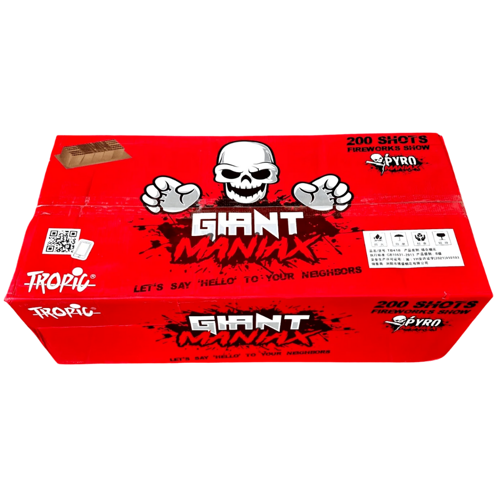 Kompaktný ohňostroj Giant Maniax je sprevádzaný rôznymi viacfarebnými efektami. Tento ohňostroj vypáli do vzduchu 200 rán s veľkosťou ráže 25 mm s dĺžkou efektu približne 110 sekúnd.