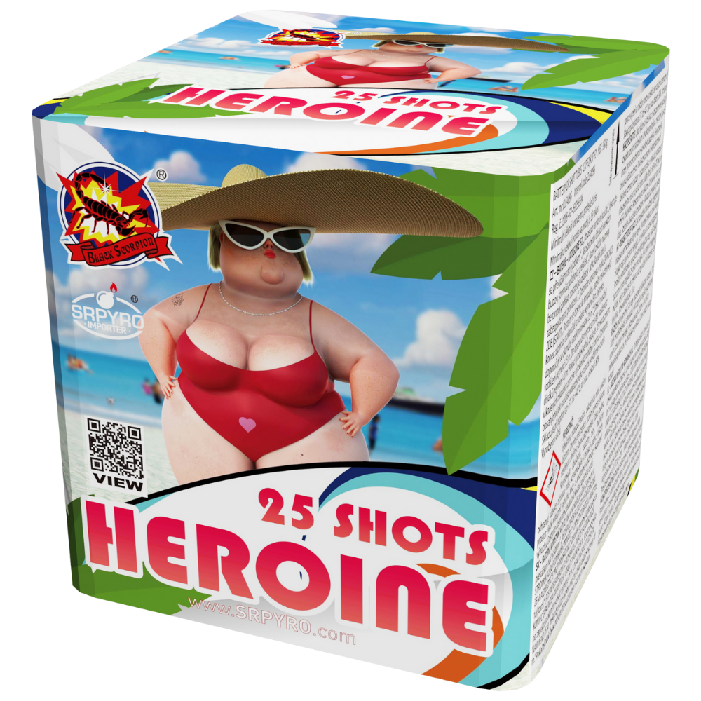 Kompaktný ohňostroj Heroine je sprevádzaný rôznymi viacfarebnými efektami. Tento ohňostroj vypáli do vzduchu 25 rán ráže 18 mm.