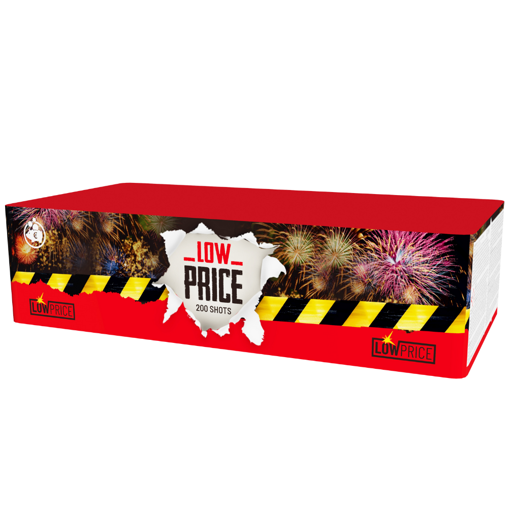 Kompaktný ohňostroj Low price je sprevádzaný rôznymi viacfarebnými efektami. Tento ohňostroj vypáli do vzduchu 200 rán ráže 20 mm a celá show trvá xxx sekúnd.