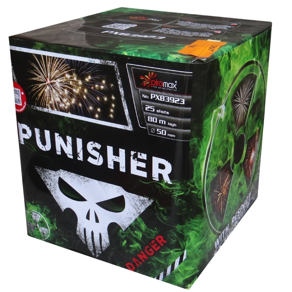 Kompaktný ohňostroj Punisher je sprevádzaný rôznymi viacfarebnými efektami. Tento ohňostroj vypáli do vzduchu 25 rán s veľkosťou ráže 50 mm s dĺžkou efektu približne 50 sekúnd.