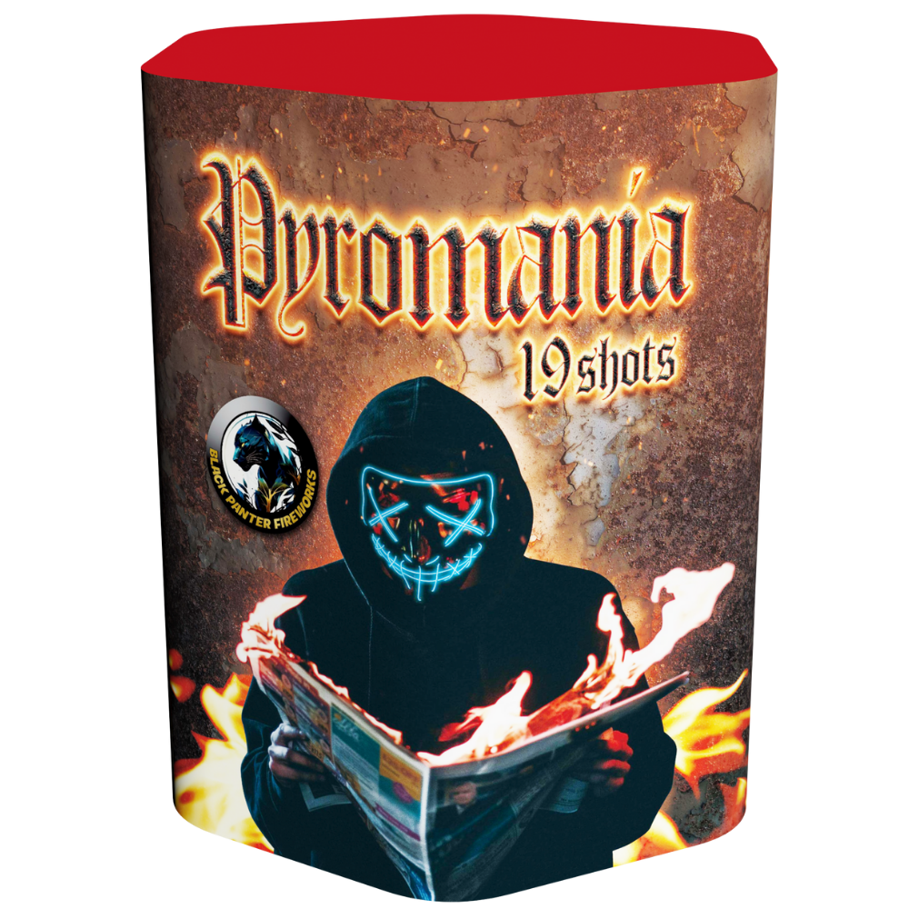 Kompaktný ohňostroj Pyromania je sprevádzaný rôznymi viacfarebnými efektami. Tento ohňostroj vypáli do vzduchu 19 rán s veľkosťou ráže 30 mm s dĺžkou efektu 40 sekúnd.