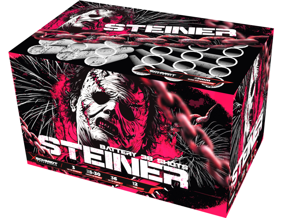 Kompaktný ohňostroj Steiner je sprevádzaný rôznymi viacfarebnými efektami. Tento ohňostroj vypáli do vzduchu 36 rán ráže 25 mm s dĺžkou efektu 15 sekúnd