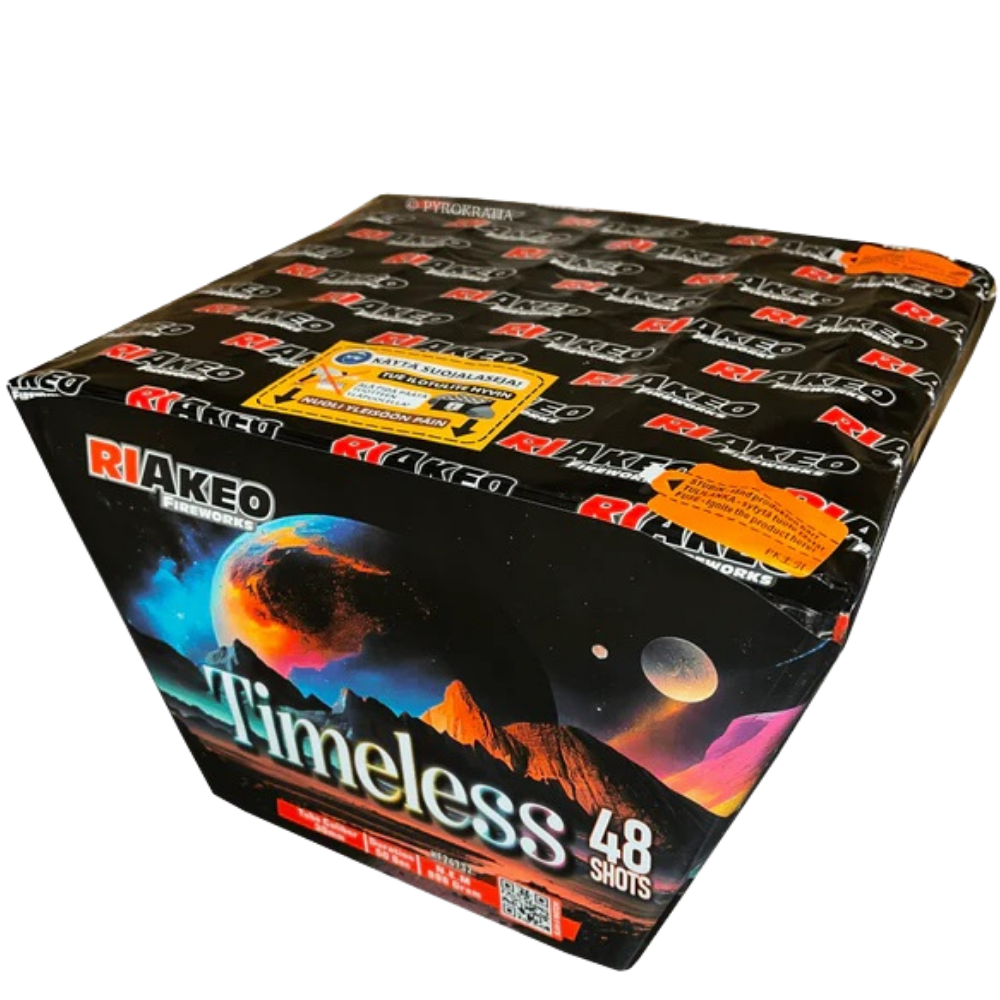 Batéria Timeless je sprevádzaný rôznymi viacfarebnými efektami. Tento ohňostroj vypáli do vzduchu 48 rán ráže 30 mm s dĺžkou trvania cca 50 sekúnd.