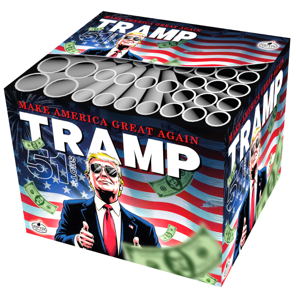 Kompaktný ohňostroj Tramp je sprevádzaný rôznymi viacfarebnými efektami. Tento ohňostroj vypáli do vzduchu 51 rán ráže 25-38 mm.