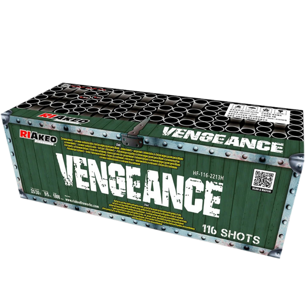 Kompaktný ohňostroj Vengeance je sprevádzaný rôznymi viacfarebnými efektami. Tento ohňostroj vypáli do vzduchu 116 rán s veľkosťou ráže 25-30 mm s dĺžkou efektu približne 95 sekúnd.