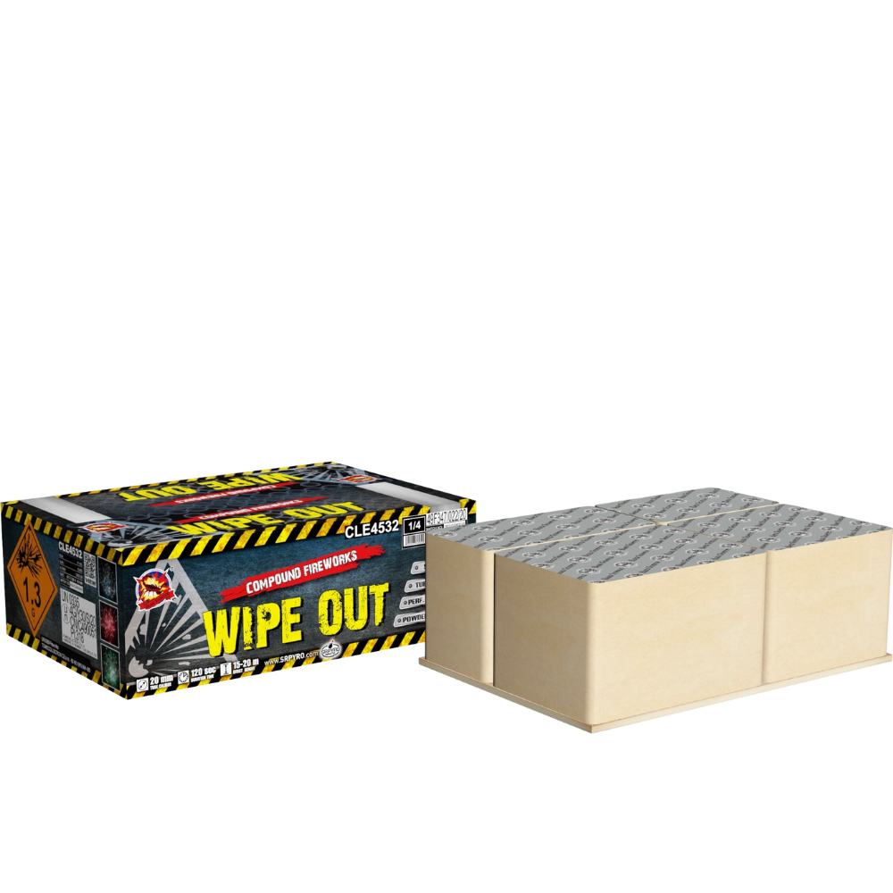 Kompaktný ohňostroj Wipe Out je sprevádzaný rôznymi viacfarebnými efektami. Tento ohňostroj vypáli do vzduchu 197 rán s veľkosťou ráže 20 mm s dĺžkou efektu 120 sekúnd.