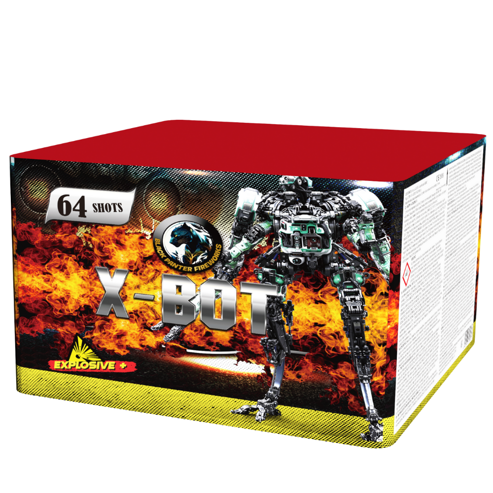 Kompaktný ohňostroj X-BOT je sprevádzaný rôznymi viacfarebnými efektami. Tento ohňostroj vypáli do vzduchu 64 rán ráže 30 mm a celá show trvá 110 sekúnd.