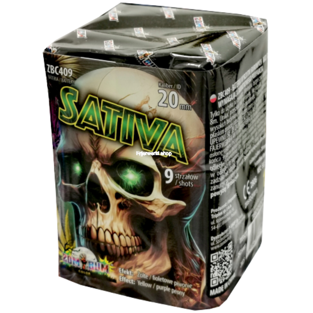 Ohňostroj Sativa je sprevádzaný rôznymi viacfarebnými efektami. Tento ohňostroj vypáli do vzduchu 9 rán s veľkosťou ráže 20 mm s dĺžkou efektu 15 sekúnd.