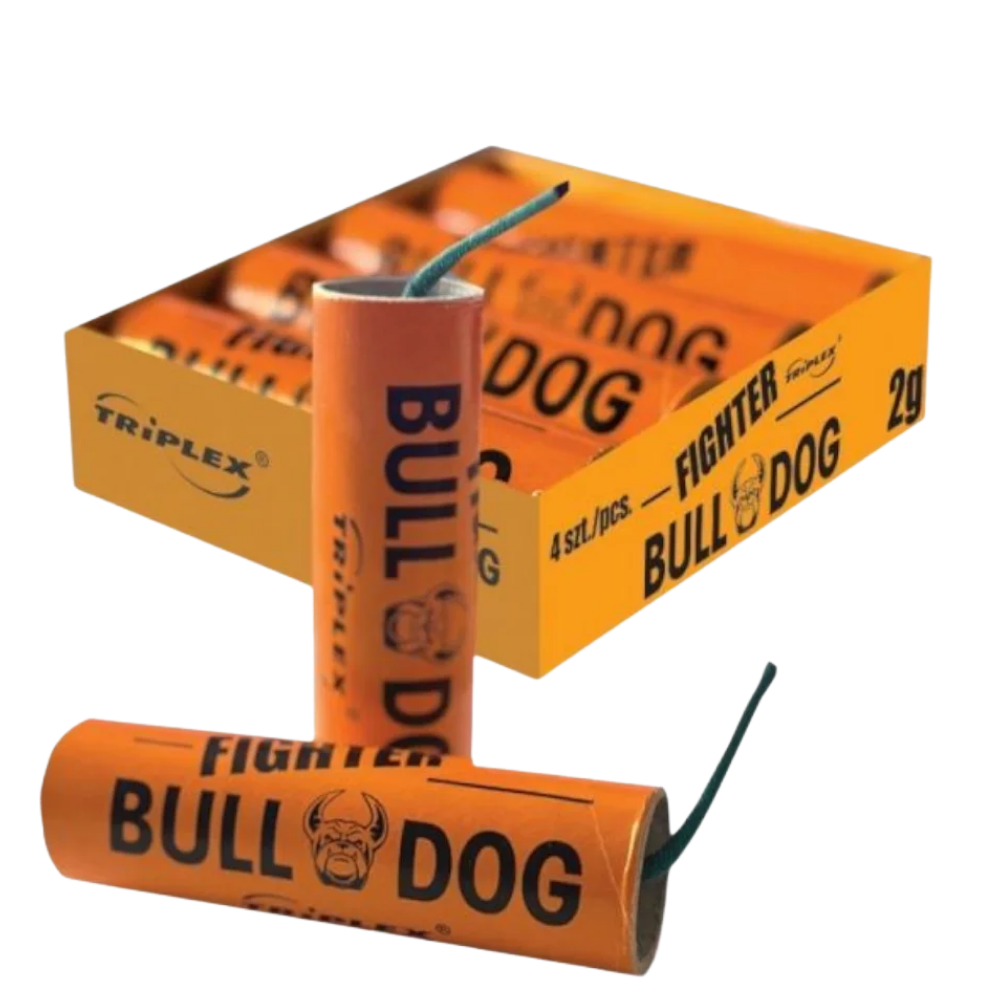 Toto balenie zábavnej pyrotechniky Bulldog Fighter obsahuje 4 kusy petárd so zápalnou šnúrou a s pyrotechnickým zložením jednej petardy 2g.