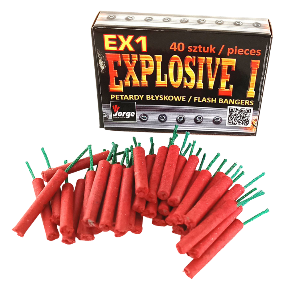 Toto balenie zábavnej pyrotechniky obsahuje 40 kusov petárd Explosive I so zápalnou šnúrou.