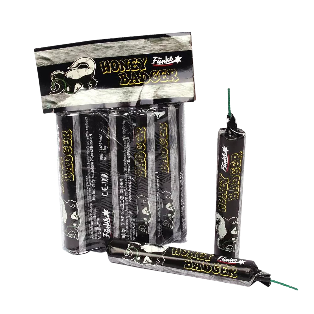 Toto balenie zábavnej pyrotechniky obsahuje 5 kusov petárd Honey badger , pričom každá petarda je sprevádzaná zvukovým efektom.
