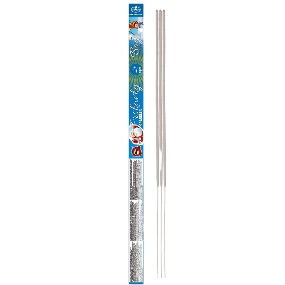 Toto exkluzívna balenie vianočných prskaviek obsahuj 3 kusy prskaviek s 88,5 cm prskacou hmotou. Dĺžka trvania cca 180 sekúnd.