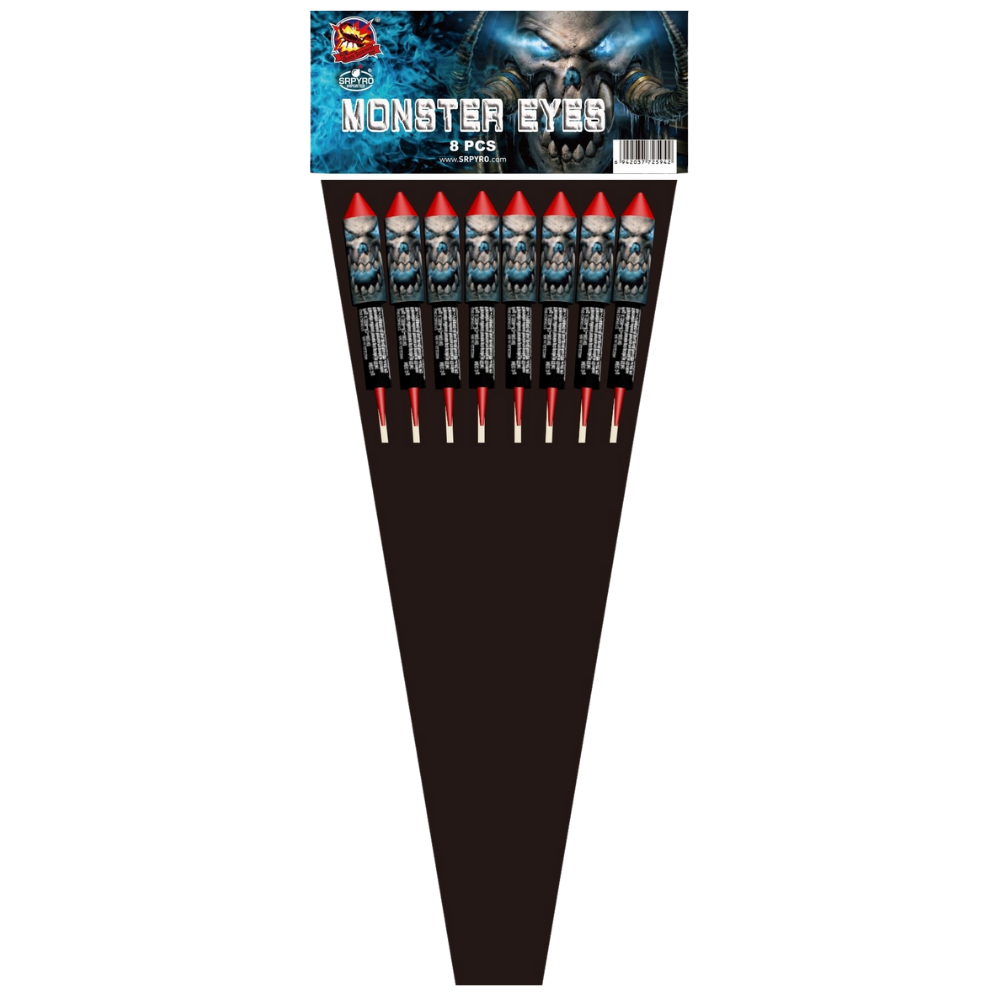 Rakety Monster eyes je sada 8 kusov malých rakiet s efektom zapísknutia a výbuchu.