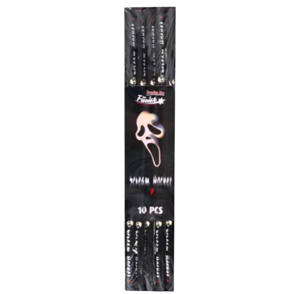 Rakety Scream rocket ja sada 10 kusov rakiet s efektom farebných svetlíc. Každá raketa je 51 cm vysoká.
